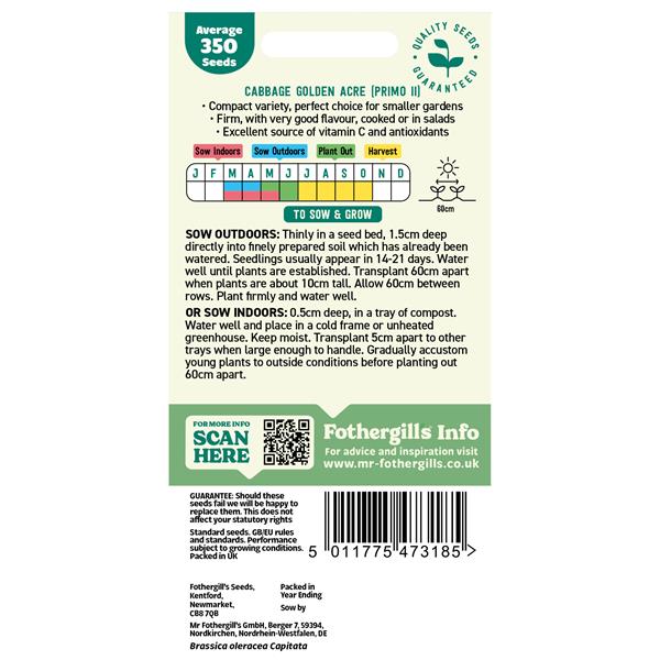 Mr Fothergills Cabbage Golden Acre (Primo Ii)
