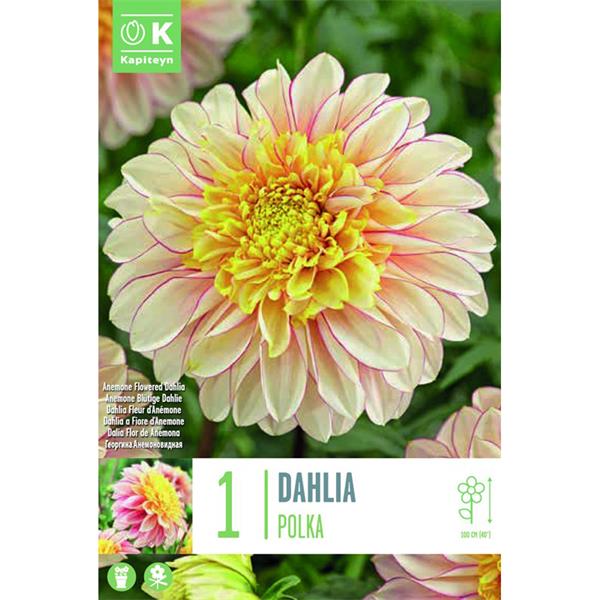 A cheerful dahlia that flowers freely and brightens patios and garden displays.