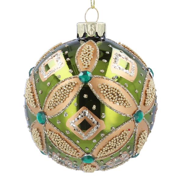 Gisela Graham Green/Gold Beaded Trellis W Jewel Glass Ball