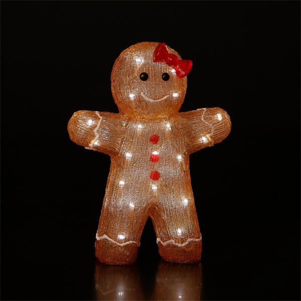 40cm high acrylic Mrs Gingerbread figure with red bow and 40 white LED lights.