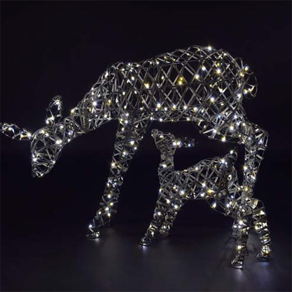 Grey duo bulb rattan figures are designed by wrapping grey rattan around a grey frame with a combination of warm white and white duo LED's