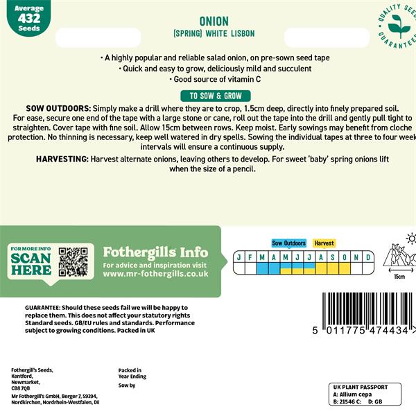 Mr Fothergills Tape Onion (Spring) White Lisbon